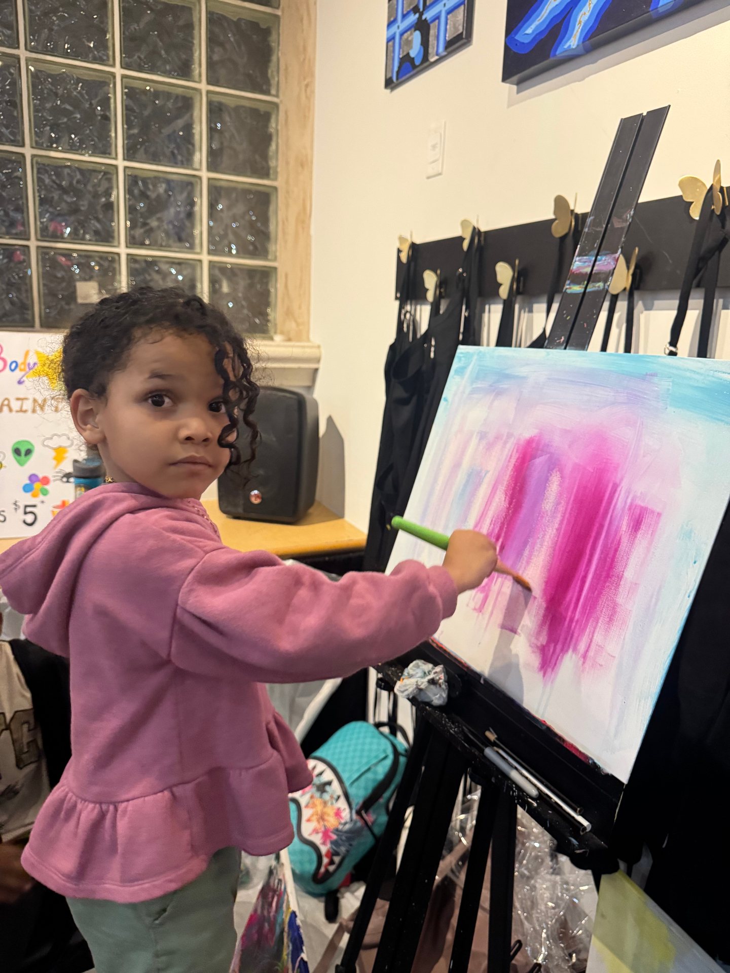 Amillie Merced discovered her love for painting before she could even spell her name. With a brush in hand and Bob Ross on the screen, she swirls oceans of pink, lavender skies, and gentle blue rains across every canvas. Each piece is a window into a six-year-old's wonder — unfiltered, fearless, and full of joy.